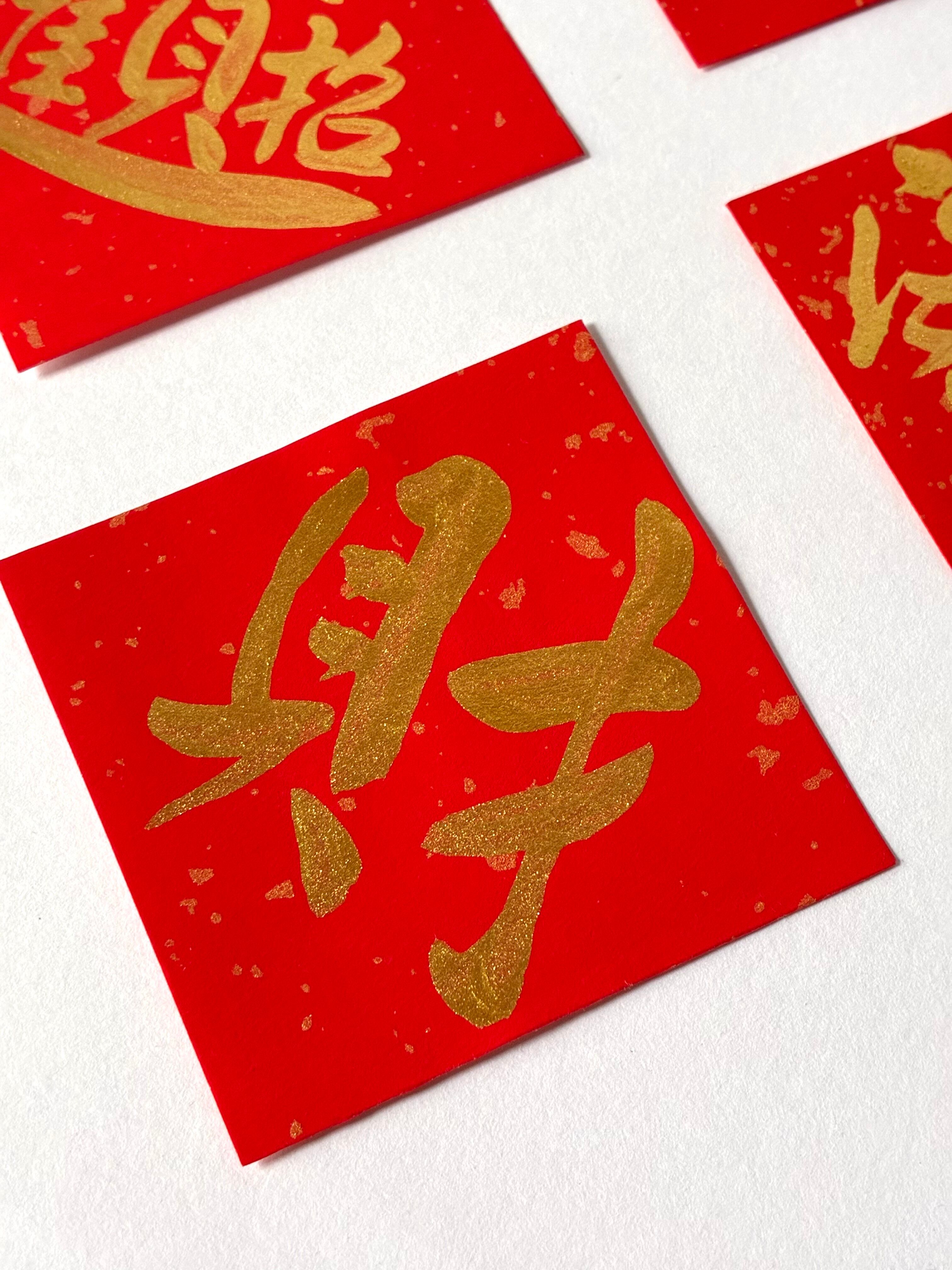四角4枚セット「春聯」春節の縁起札